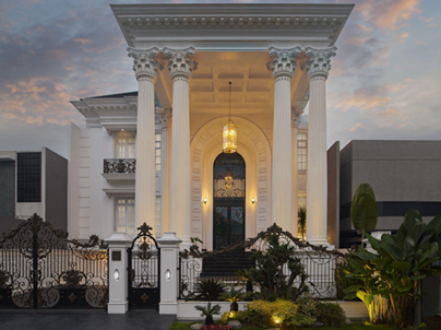 Rumah bergaya klasik Eropa selalu identik dengan keanggunan, kemewahan, dan rasa estetika yang tinggi. Gaya arsitektur ini, dengan detail ornamen