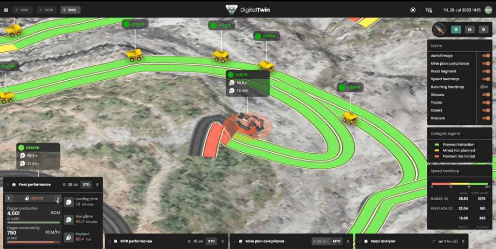- Live Telemetry: Vehicles tracked as live entities in the virtual mine.